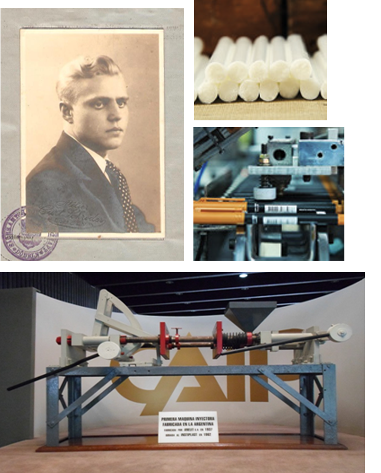 En un pueblo remoto de Sajonia en el año 1911 nace Paul Max Loos. Antes de nacer, el padre muere en un accidente, a consecuencia de ello Paul es llevado con la abuela para una educación adecuada. Estudia en Dresden y termina su capacitación técnica en 1926. En 1931 recibe el título de Ingeniero Mecánico y se traslada a Leipzig, centro de desarrollo de la época, donde trabaja hasta 1934 en Empresas pioneras en investigación y desarrollo de plásticos por inyección En esos años es contactado por una empresa de fabricación de plásticos y cepillos que disuelve una de sus Plantas para trasladarla a la Argentina. Luego de interminables dificultades llega al País en 1935 para comenzar las tareas, acompañado de 1 obrero y 5 ayudantes femeninos. Después de desarrollar los primeros equipos de producción, le nace la idea de adquirir una maquina inyectora de plásticos. La 2ª guerra mundial se aproximaba y la importación se dificultaba al extremo. Por lo cual con ayuda de sus colaboradores fabrica en los propios talleres, la primera máquina inyectora del país, que actualmente se encuentra expuesta en la Cámara de Plásticos Argentina.